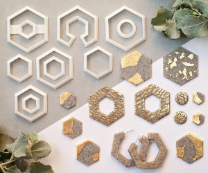 Interchangeable abstract shapes to produce earring styles with an organic feel.